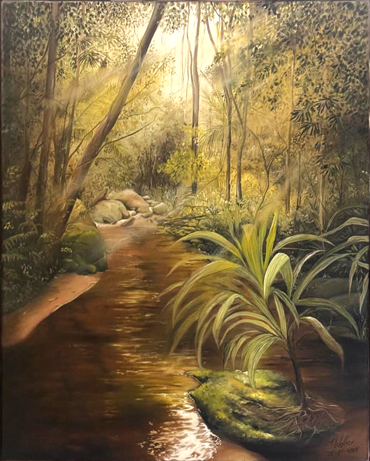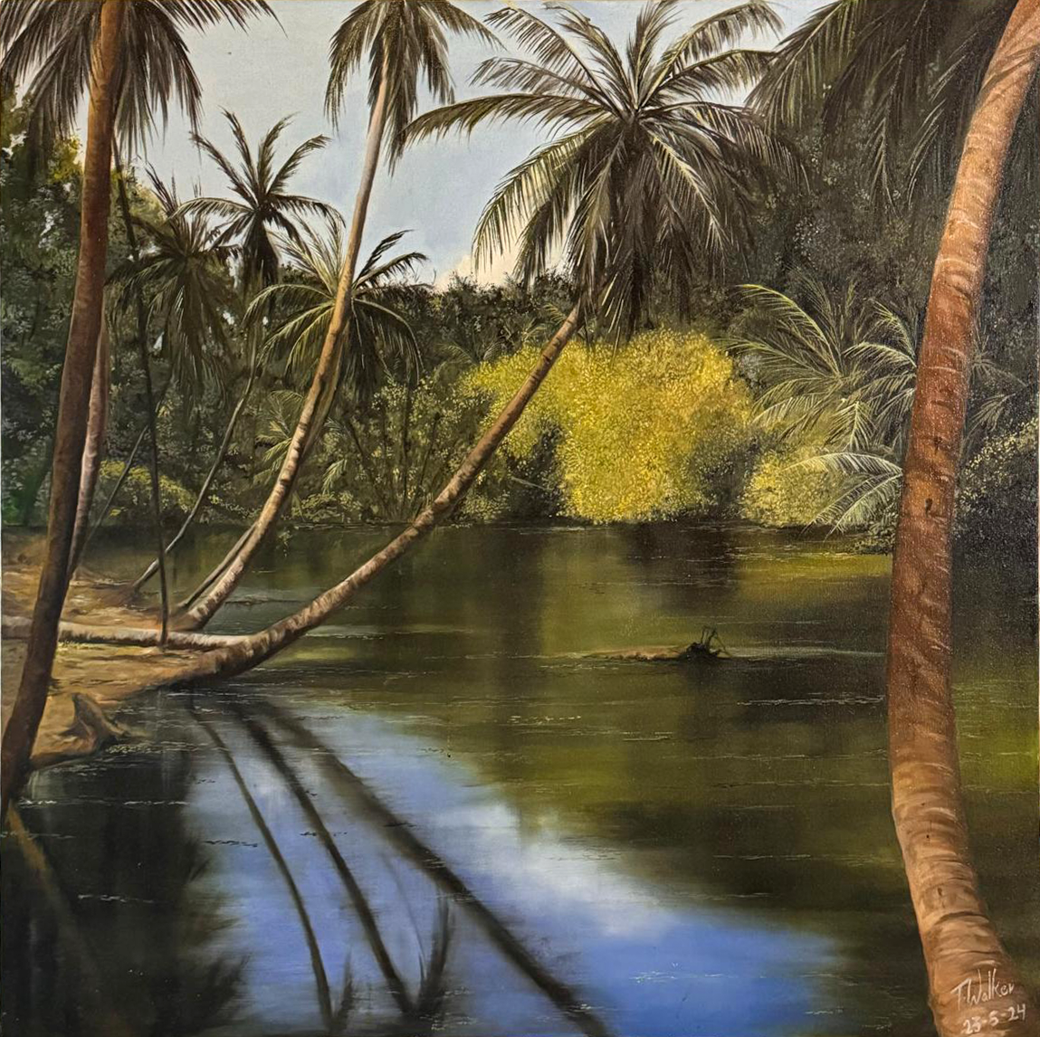 From the flowing river of Koriabo to the glistening bronze waters of the Demerara River and Atlantic Ocean, I roam across Guyana, capturing scenes that speak to its raw, natural soul. With camera in hand, I curate visual narratives through my own photography – images that later evolve into richly textured paintings alive with movement and emotion.